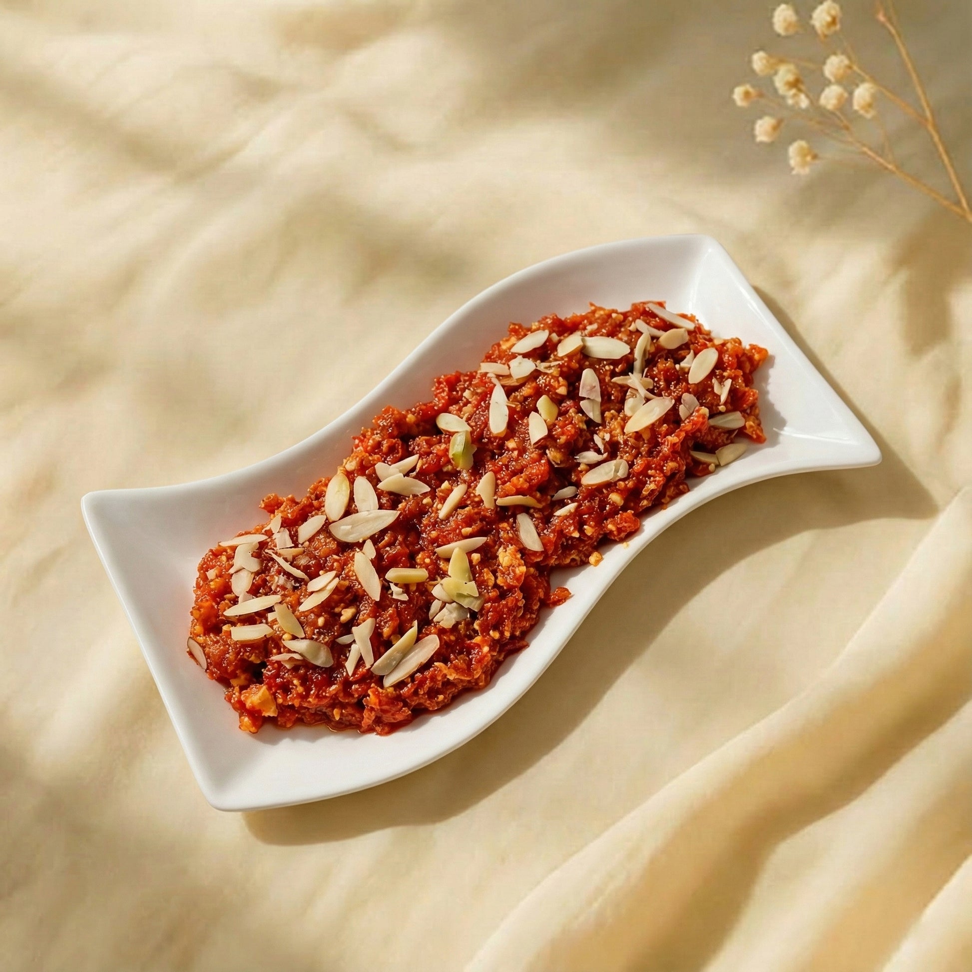 A classic Pakistani dessert made with freshly grated carrots, simmered slowly in full cream milk and pure desi ghee. Enriched with almonds, cashews, and pistachios, it is rich, creamy, and full of authentic flavor a perfect winter treat that comforts both the heart and the taste buds.
